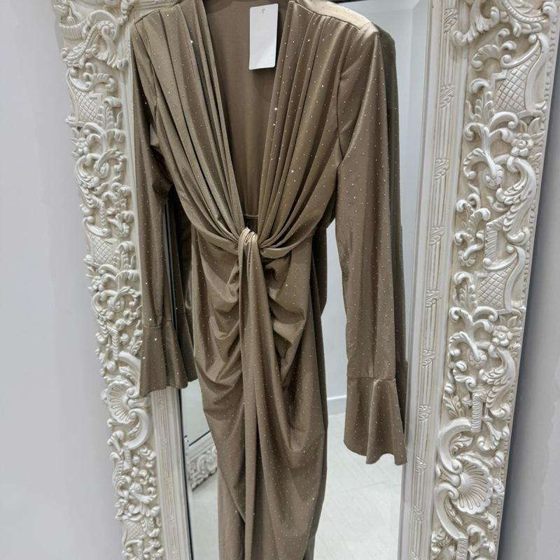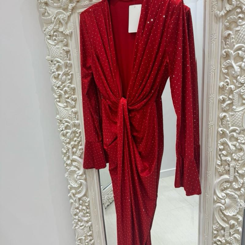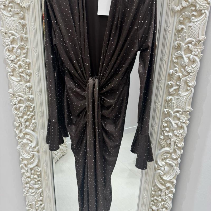 Angel ~ Diamante Sparkle Long Sleeve Knot Detail Midi Dress