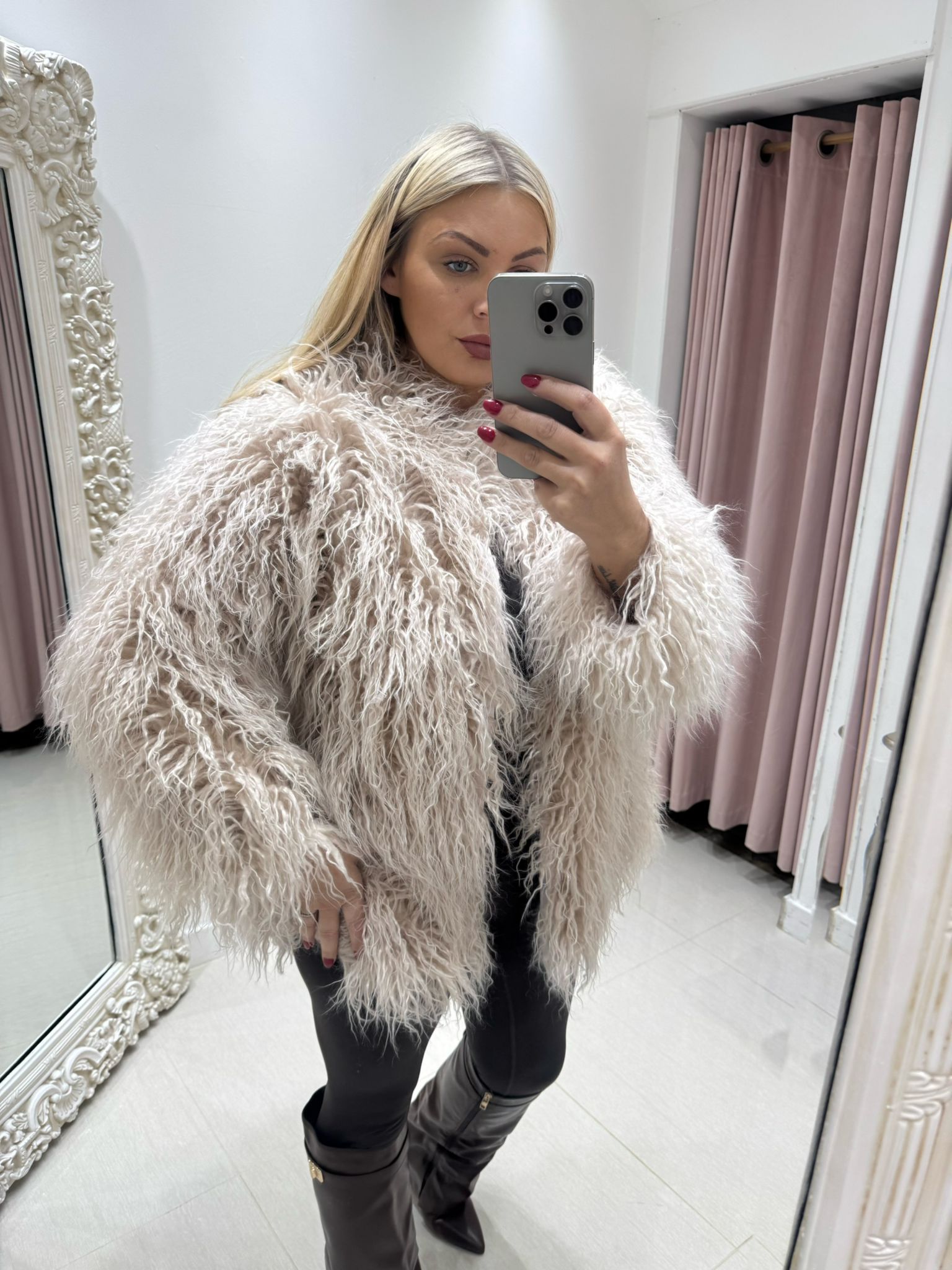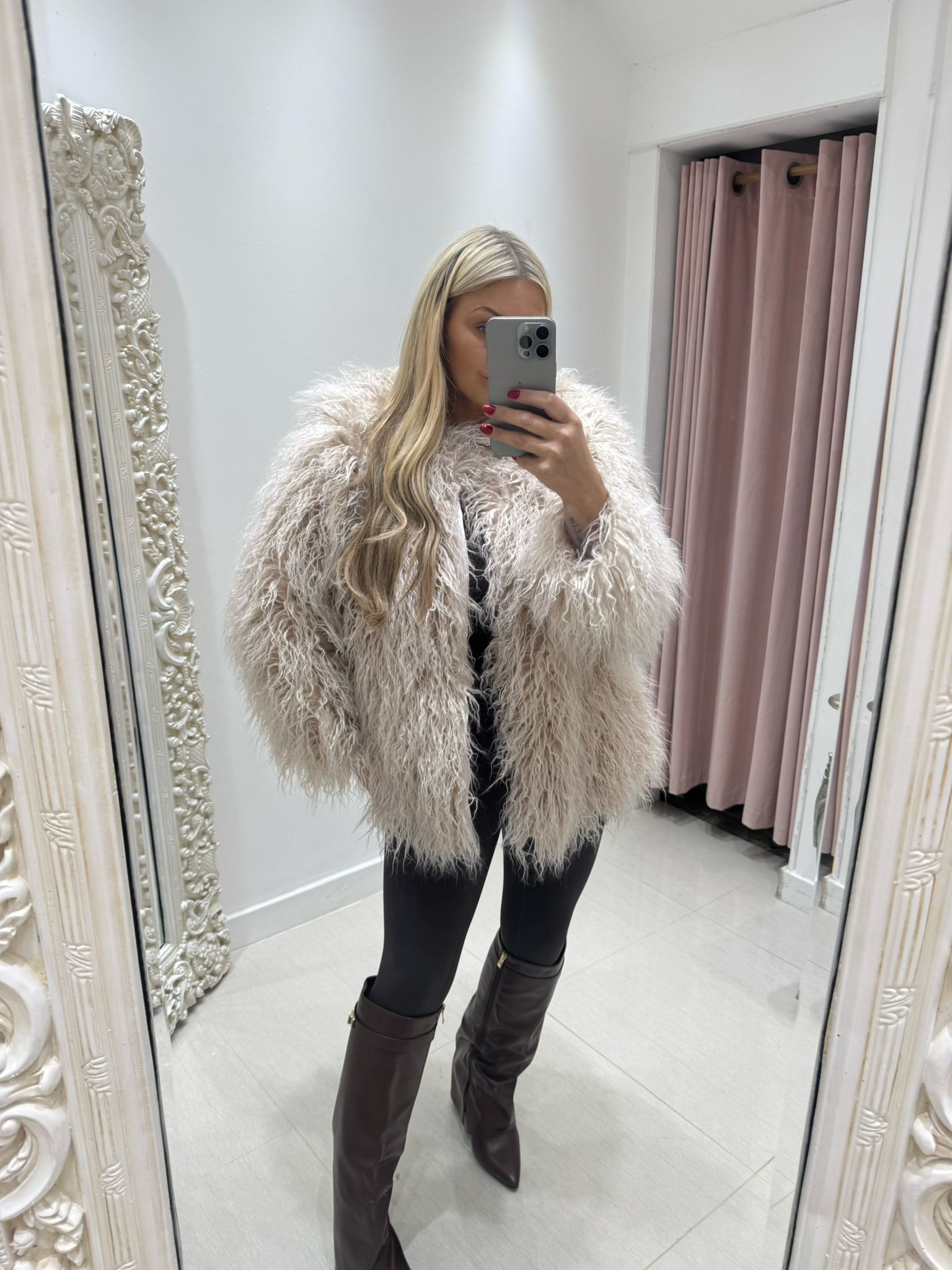 Aspen ~ Faux Mongolian Shaggy Fur Longline Jacket ~ Blush