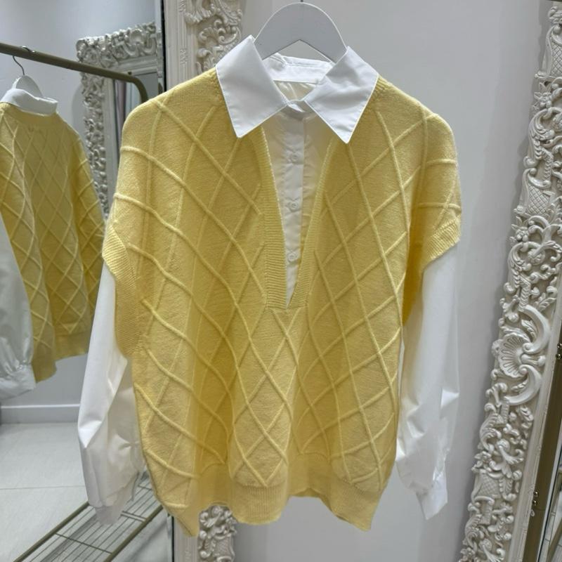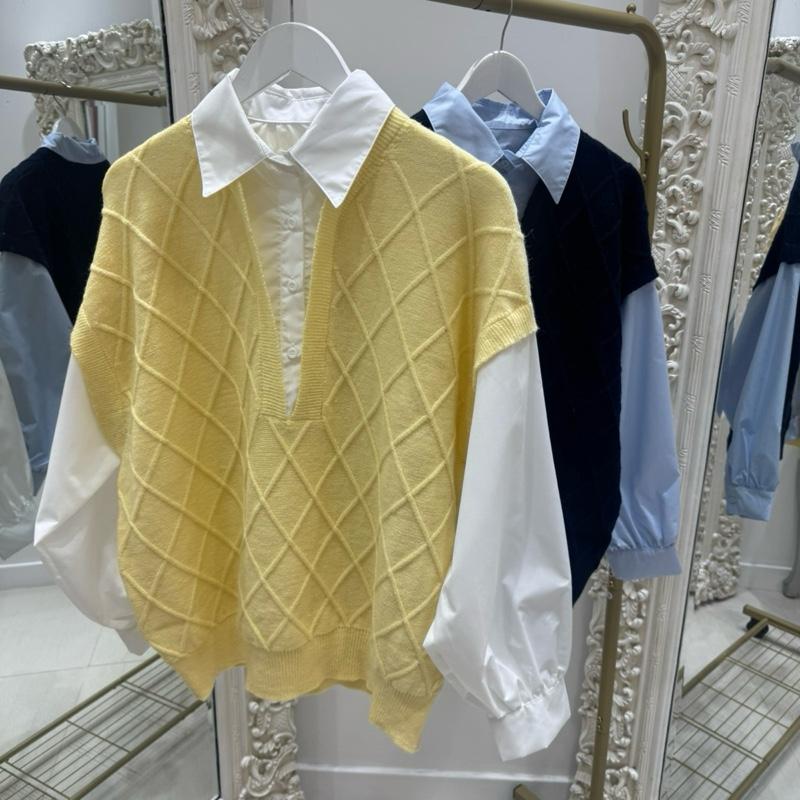 Bunnie ~ Knitted Tank Top With Attached White Shirt