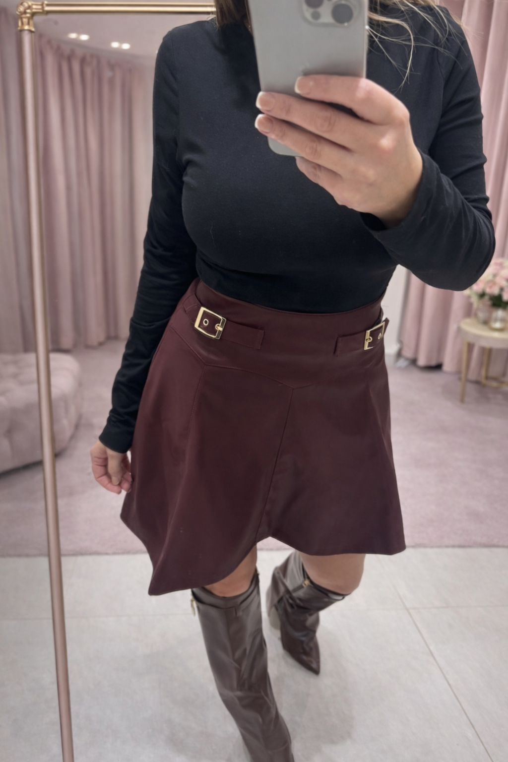 Charlotte ~ Faux Leather Skirt With Gold Buckles