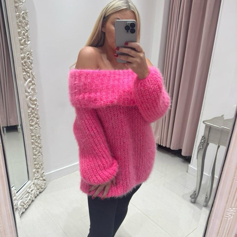 Product form Pretty Dollz Connie ~ Luxury Knit Bardot Jumper ~ Barbie Pink Slightly fluffy off the shoulder bardot jumper One Size Fits from 8 - 16 £28.00 2 in stock Quantity Add to cart Guaranteed secure & safe checkout.