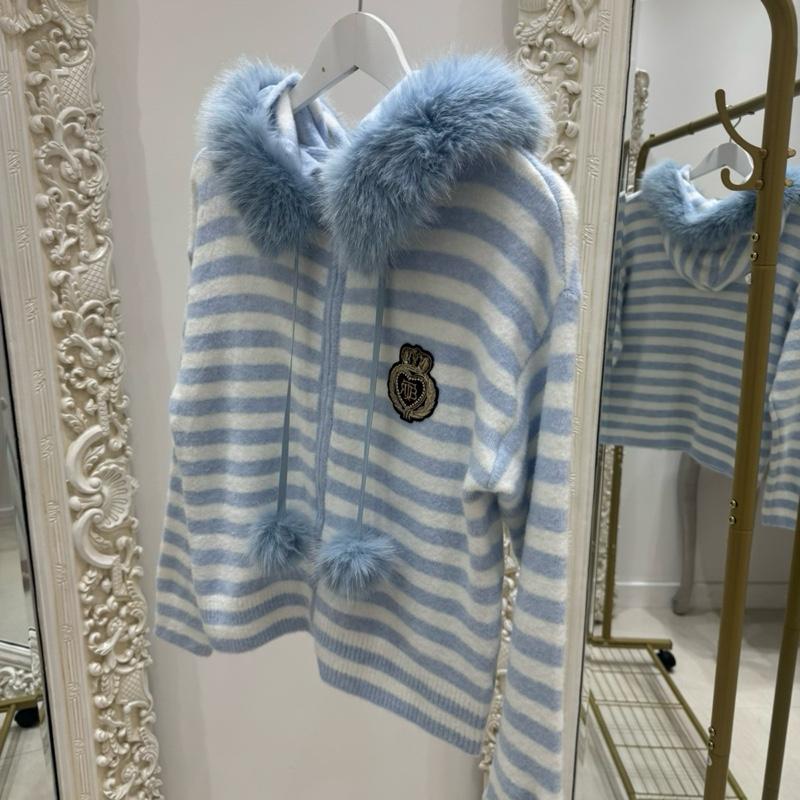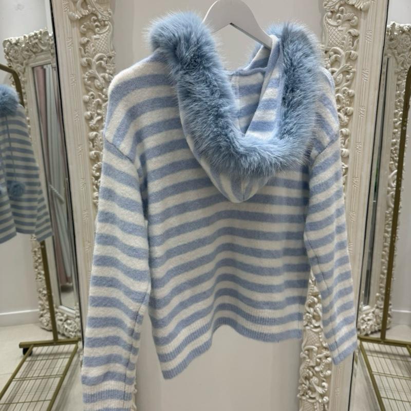 Ellie ~ Powder Blue Striped Hooded Jacket