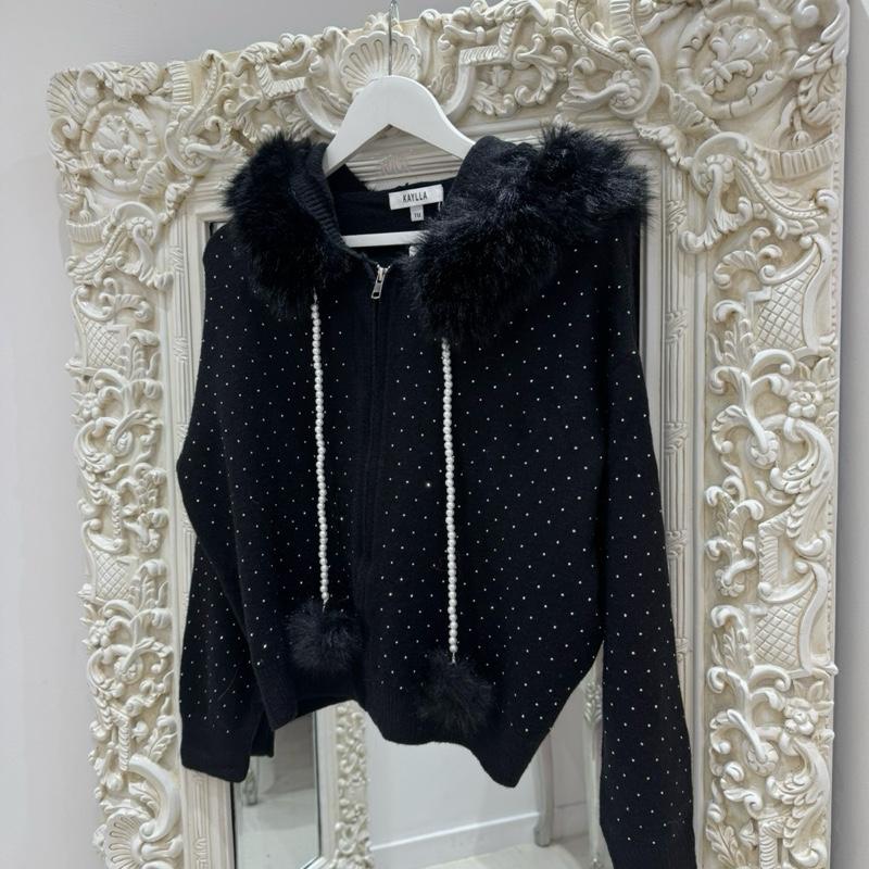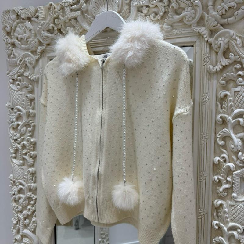 Icy ~ Faux Fur Diamante Cardigan Jacket With Hood