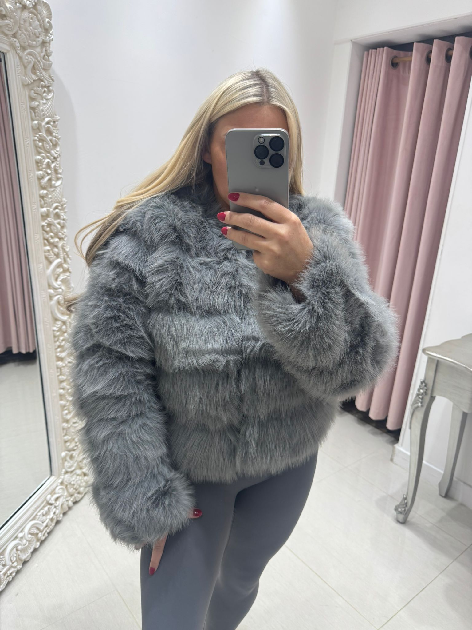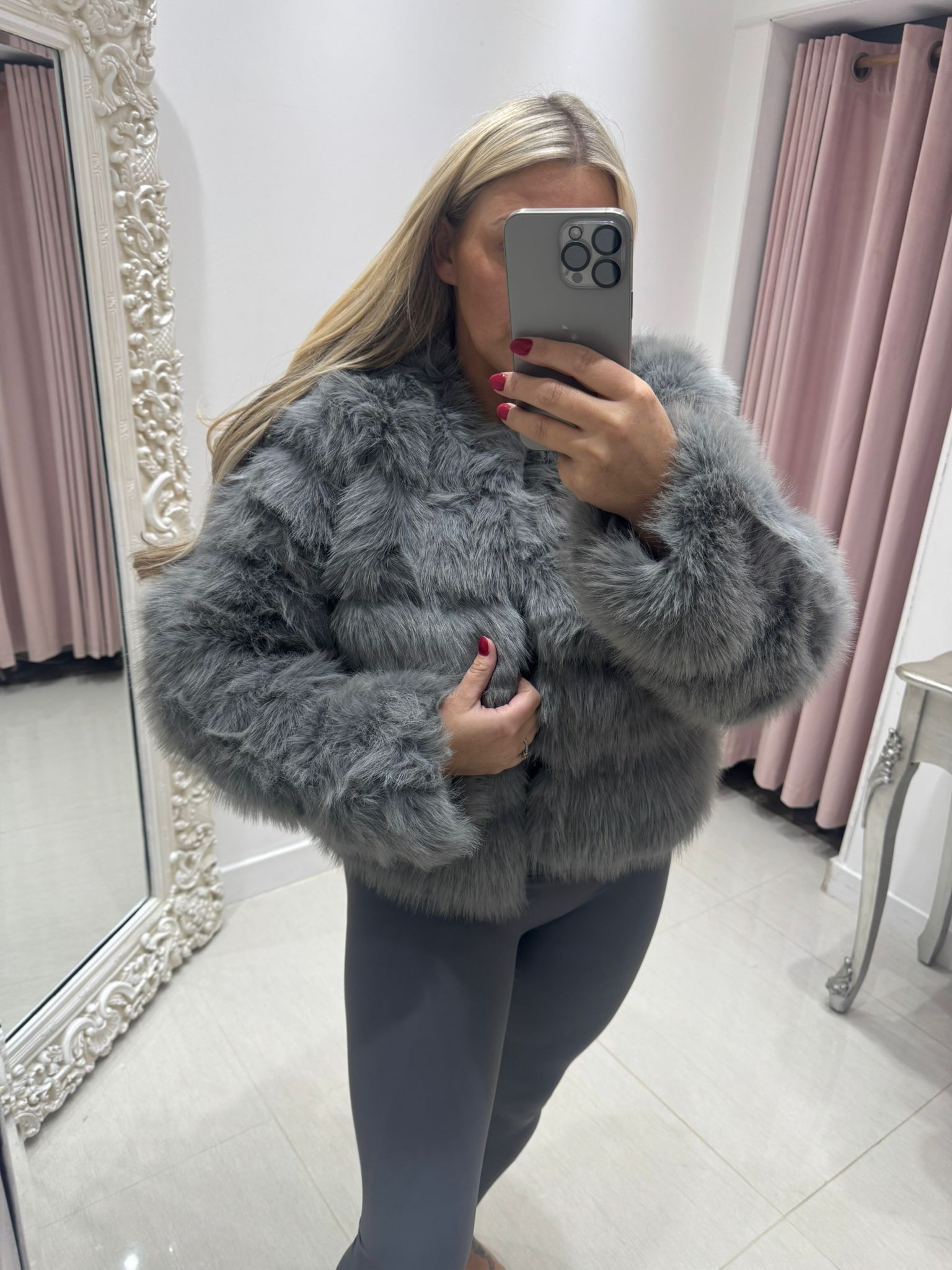 Sale -17%Last stock! Product form Jasmine ~ Luxury Faux Fur Panelled Jacket ~ Silver Grey Very Thick Panelled Faux Fur Jacket - Lined - Hook & Eye Closure £42.00 £34.95 xs XS - 6 S - 8 M - 10 L - 12 XL - 14 1 in stock Quantity Add to cart Guaranteed secure & safe checkout.
