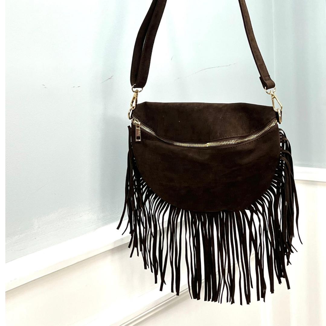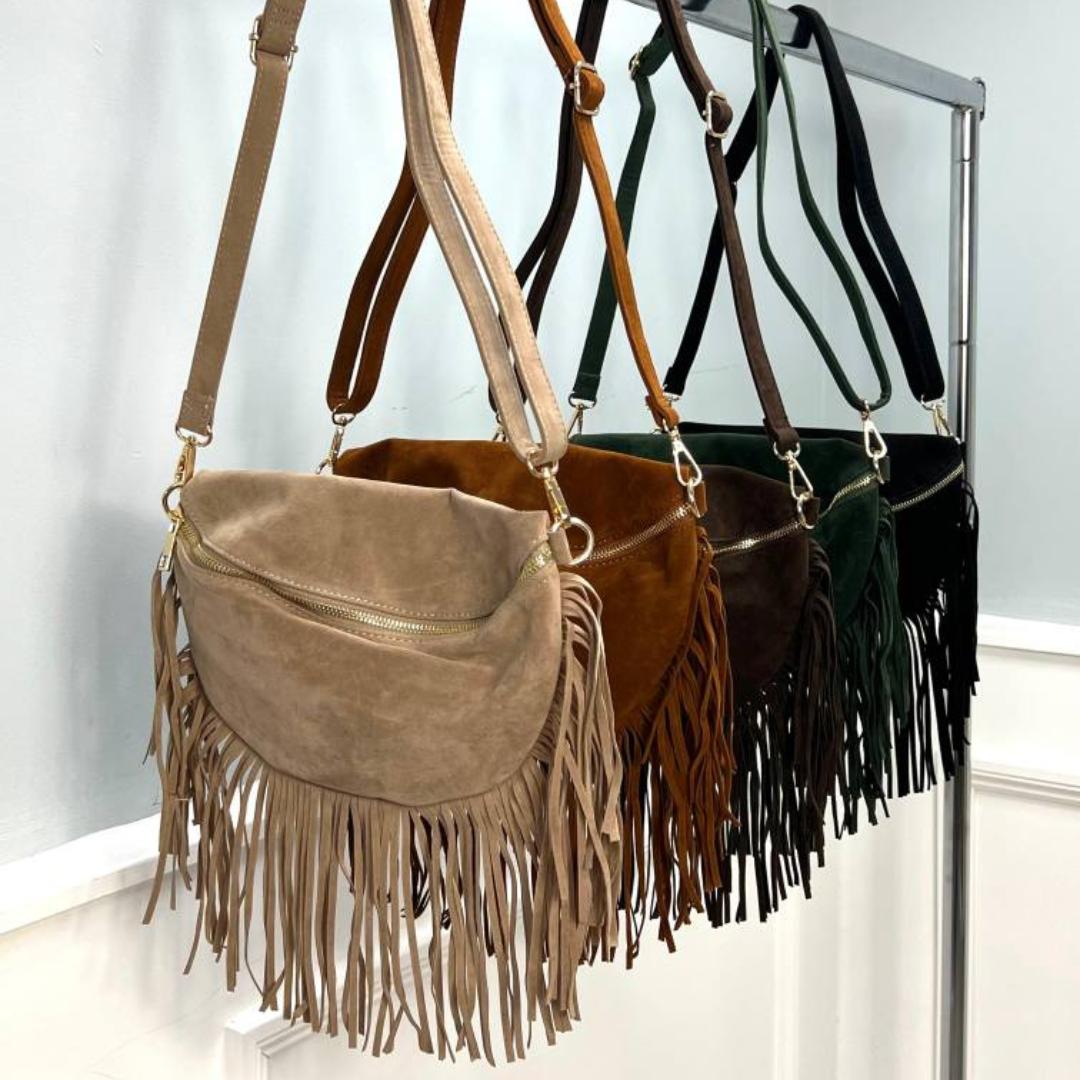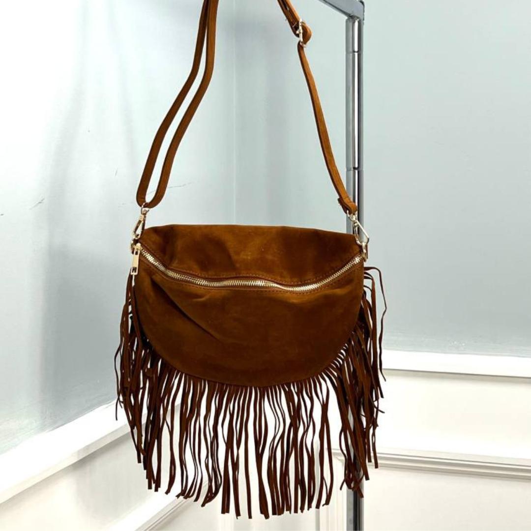 Product form Pretty Dollz Jordane ~ Faux Suede Bum Bag/ Crossbody Bag With Tassel Fringing Zip closure to front £18.00 Color Brown camel 2 in stock Quantity Add to cart Guaranteed secure & safe checkout.