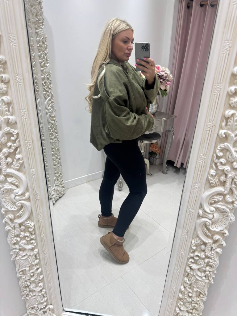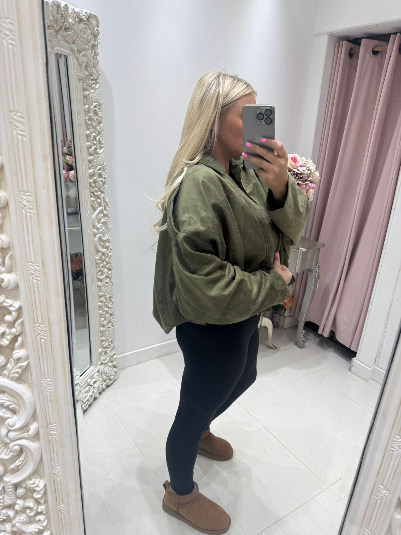 SaleLast stock! Product form Khaki Green Faux Suede Oversized Bomber Jacket £44.00 £25.00 Free pickup in our shop(s) 1 in stock Quantity Add to cart Guaranteed secure & safe checkout.