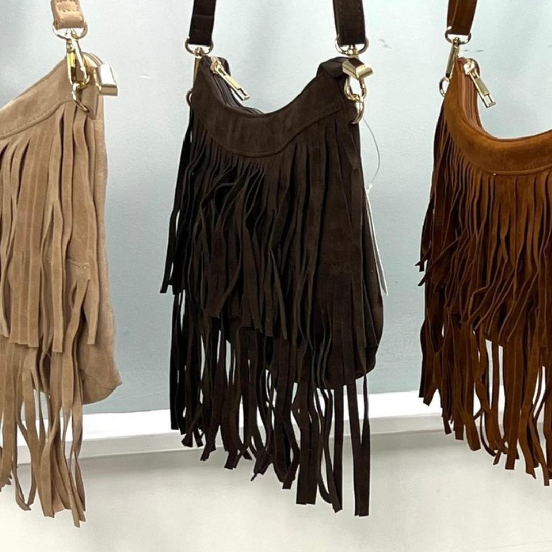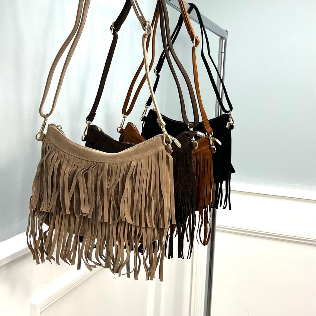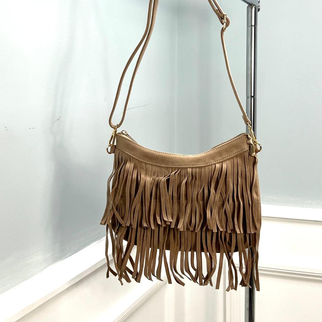 Product form Pretty Dollz Kimberley ~ Faux Suede Cross Body Bag With Tassel Fringing Can be used as a Clutch bag also £18.00 Color Brown Beige camel 2 in stock Quantity Add to cart Guaranteed secure & safe checkout.
