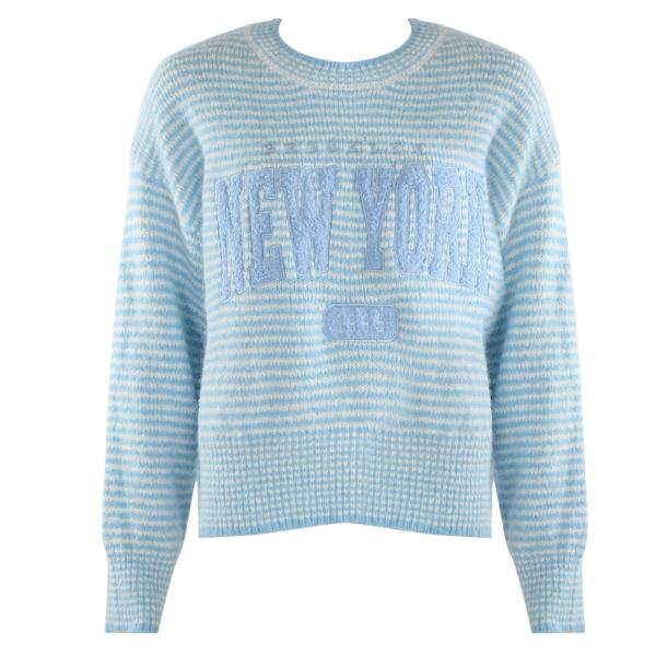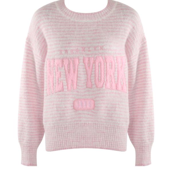 Pastel Striped Embroidered Slogan Knitted Jumper