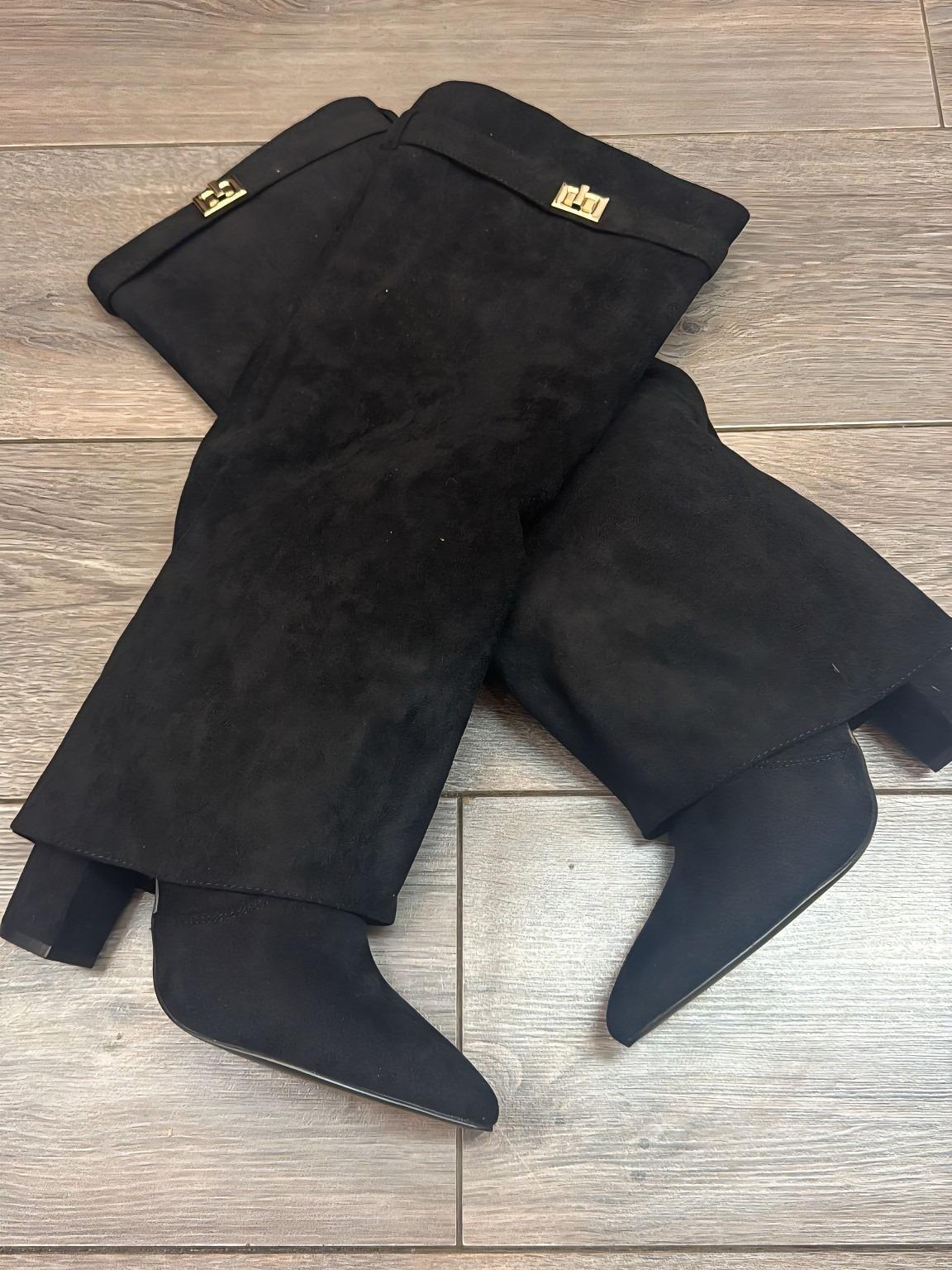 Last stock! Product form Pretty Dollz Petra ~ Faux Suede Lock Detail Knee High Boots Black Faux Suede True to Size £38.00 Shoe size 3 4 5 8 1 in stock Quantity Add to cart Guaranteed secure & safe checkout.