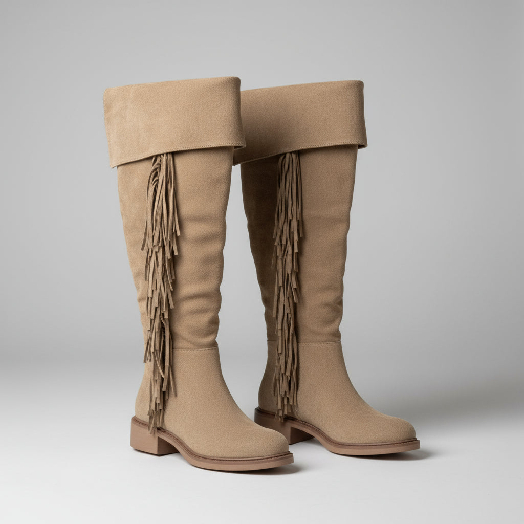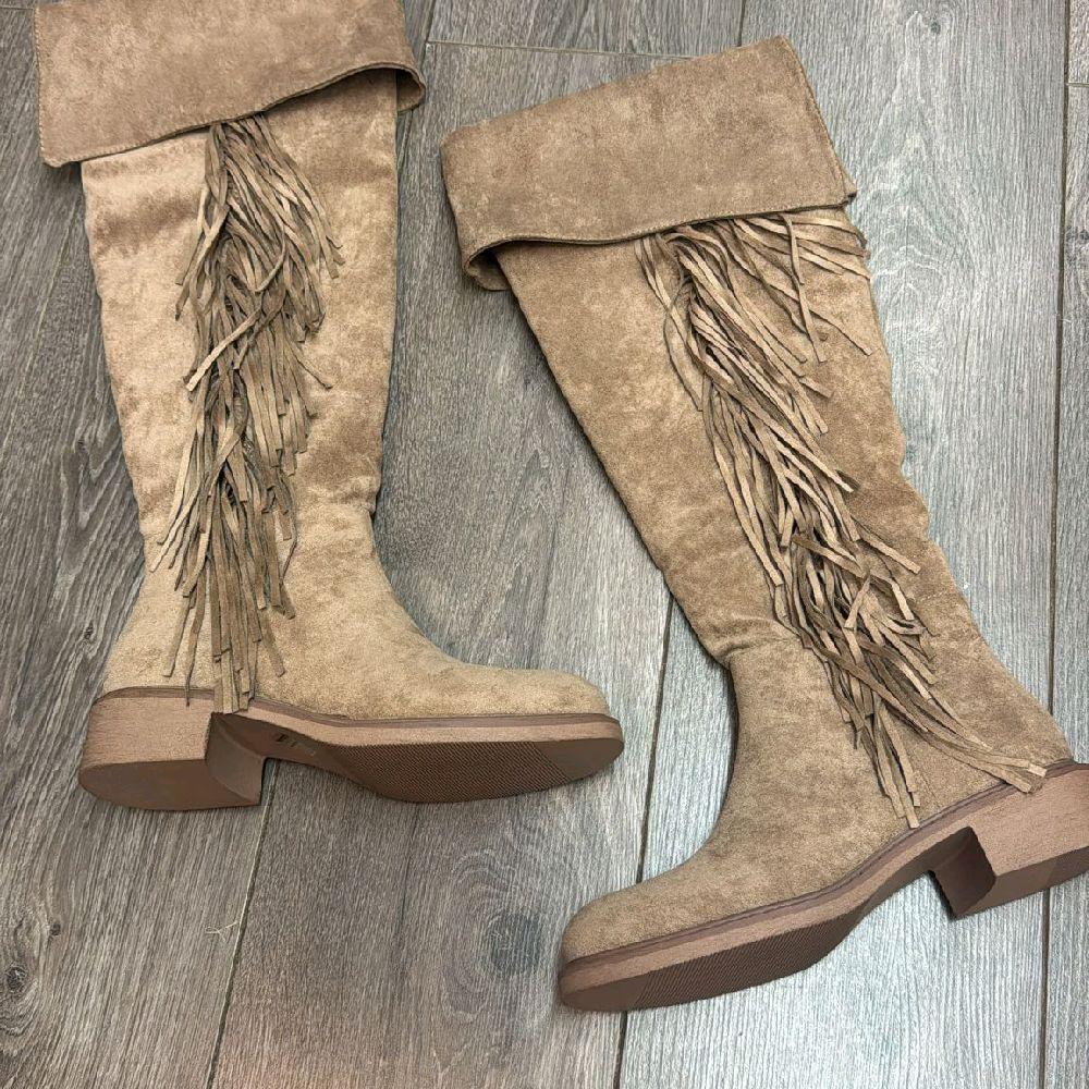 Sale -38%Last stock! Product form Rio ~ Over the Knee Faux Suede Boots With Tassel Fringing Can be worn over knee or folded over under knee True to Size £48.00 £30.00 Shoe size 4 5 8 1 in stock Quantity Add to cart Guaranteed secure & safe checkout.