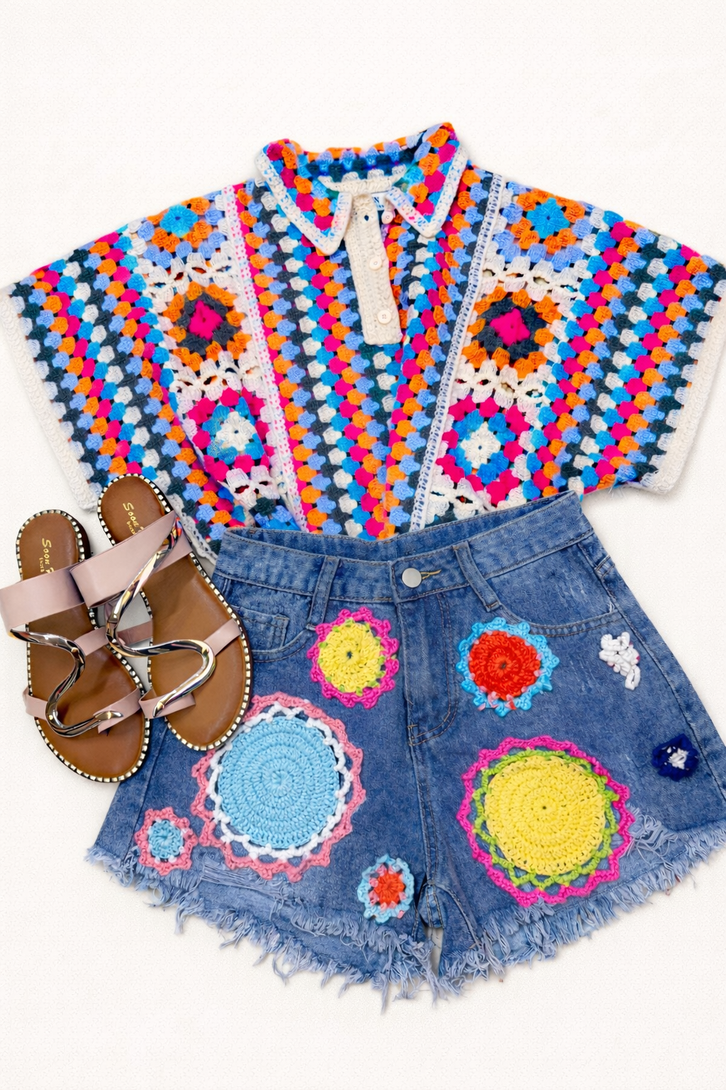 Rosa ~ Brightly Coloured Crochet Lace Top