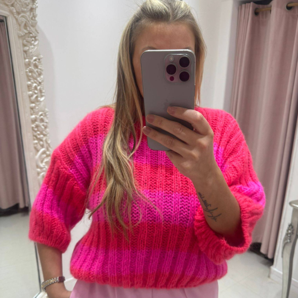 Sienna ~ Short Sleeved Striped Knitted Jumper