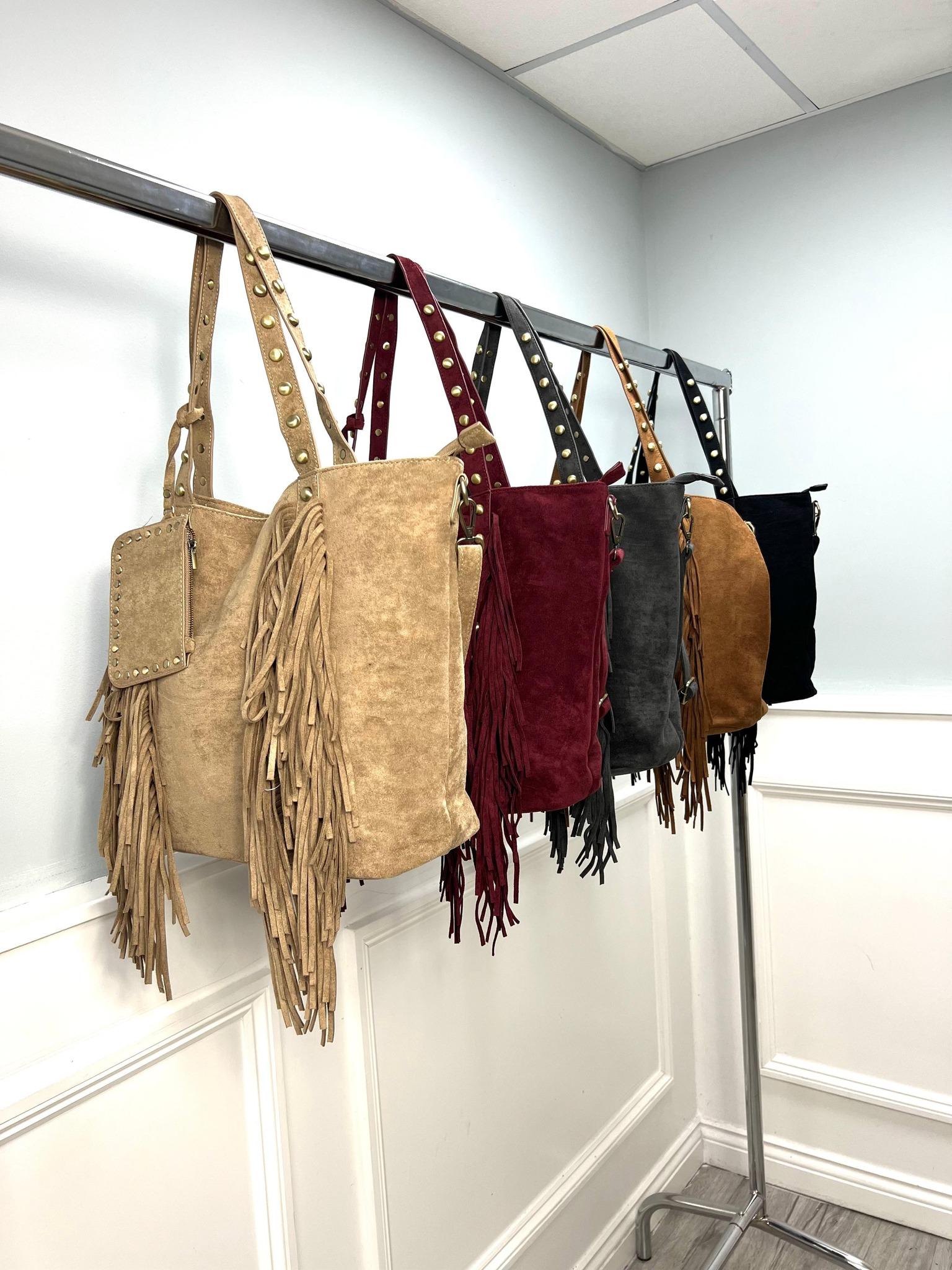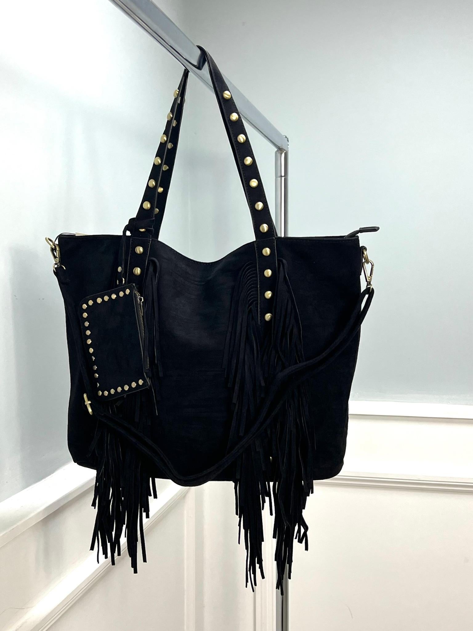 Last stock! Product form Pretty Dollz Verona ~ Black Faux Suede Tote Handbag Verona ~ Black Faux Suede Large Fringed & Stud Tote Handbag £38.00 1 in stock Quantity Add to cart Guaranteed secure & safe checkout.